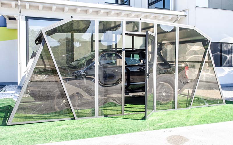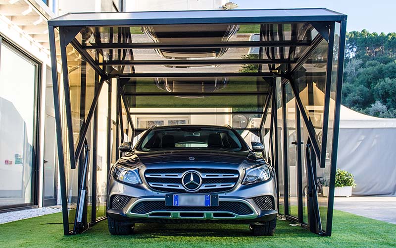 - 4mmのスモークタイプの半透明のポリカーボネート壁とUV保護付き開閉パネル。(LUXURY)