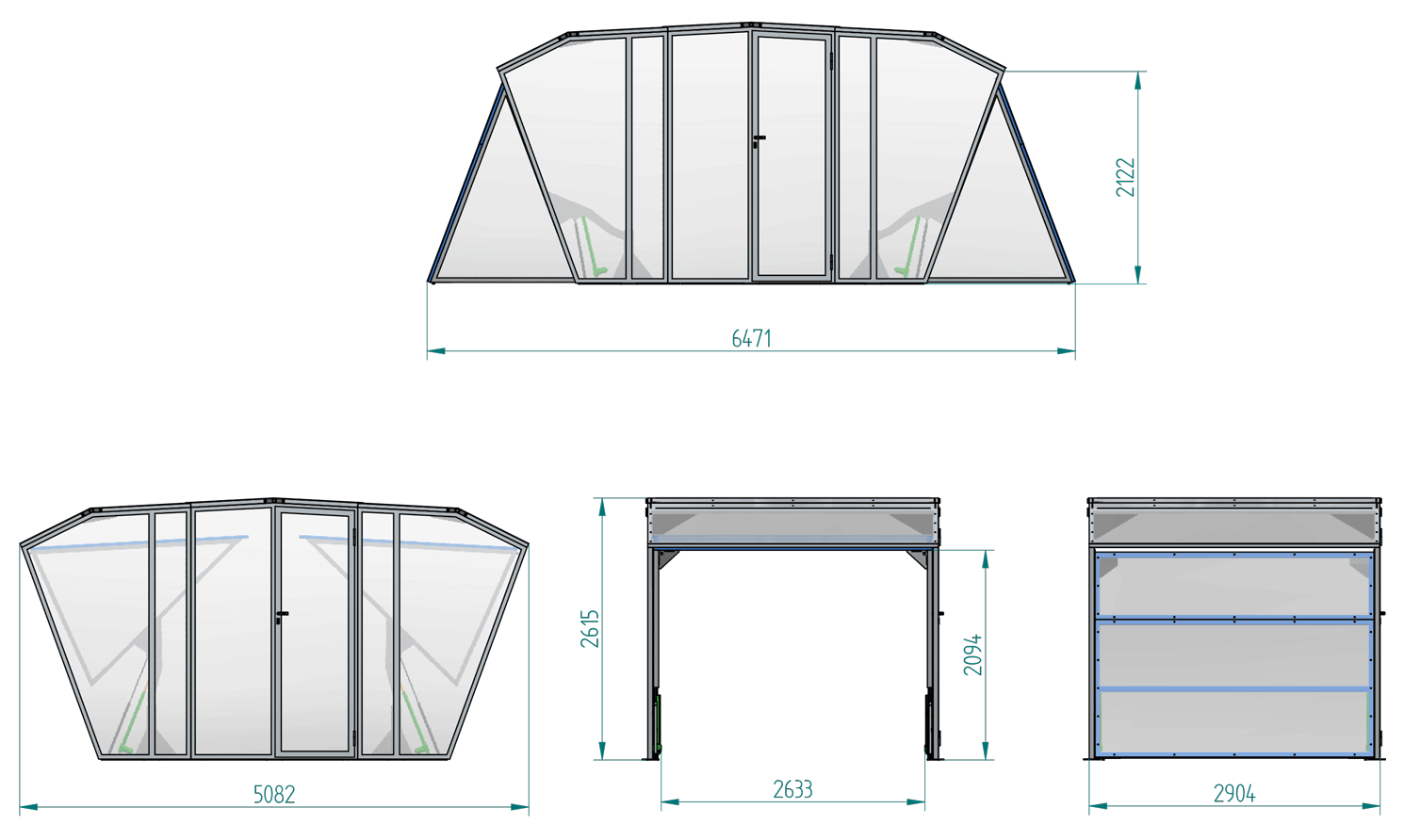 - UV保護性能を備えた10mmハニカムポリカーボネート製の垂直壁と開閉パネル。(PREMIUM)