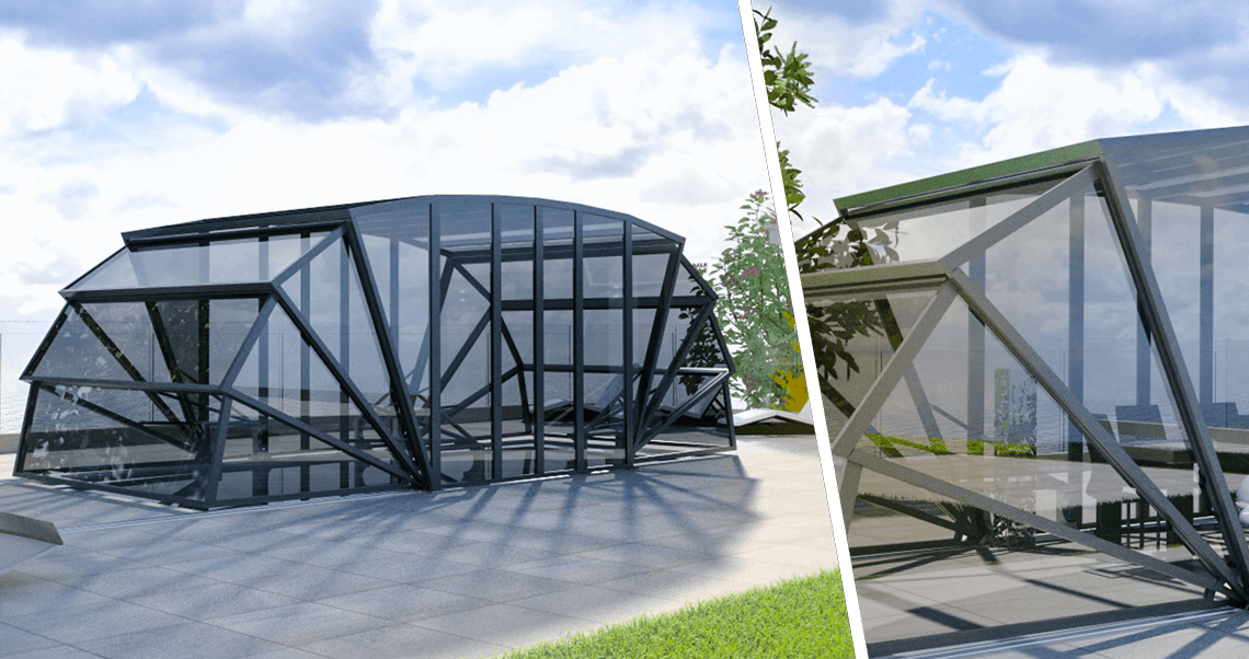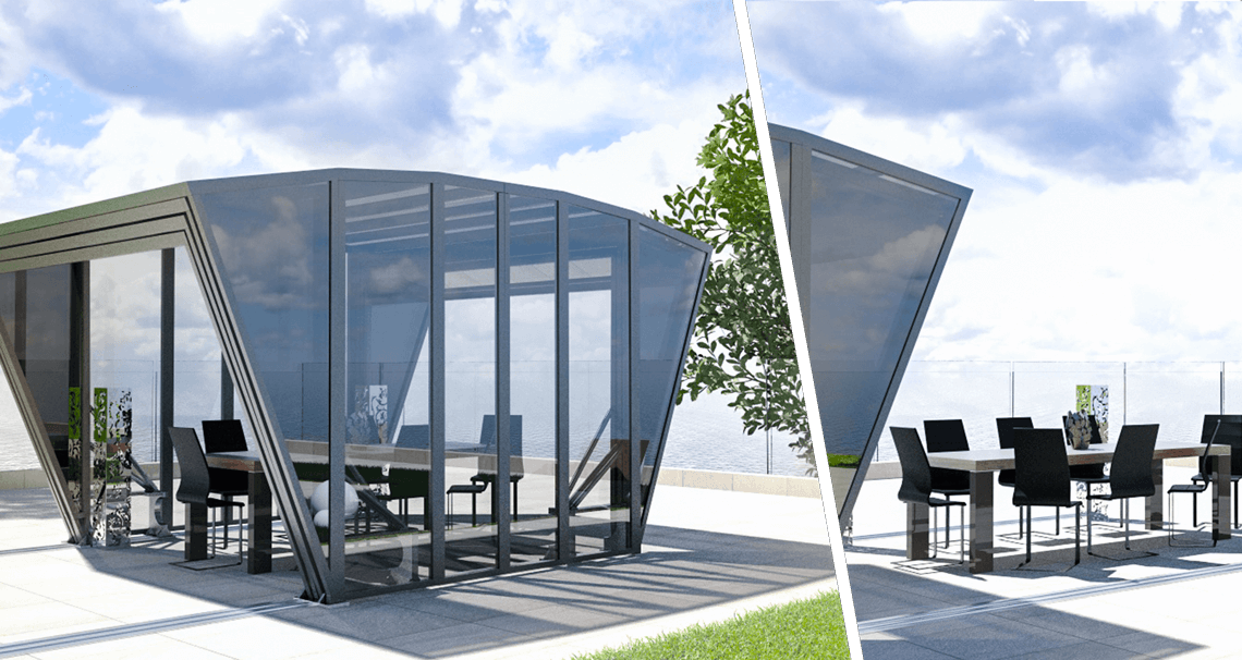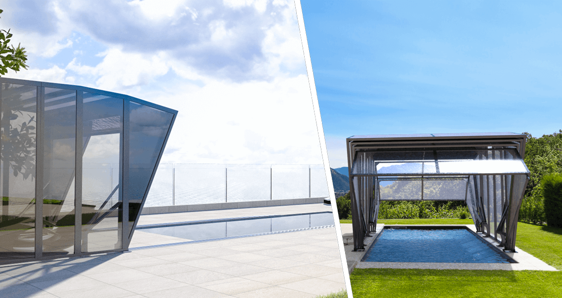 レールを使用すると、カバーはプールサイドのガゼボに変わります。